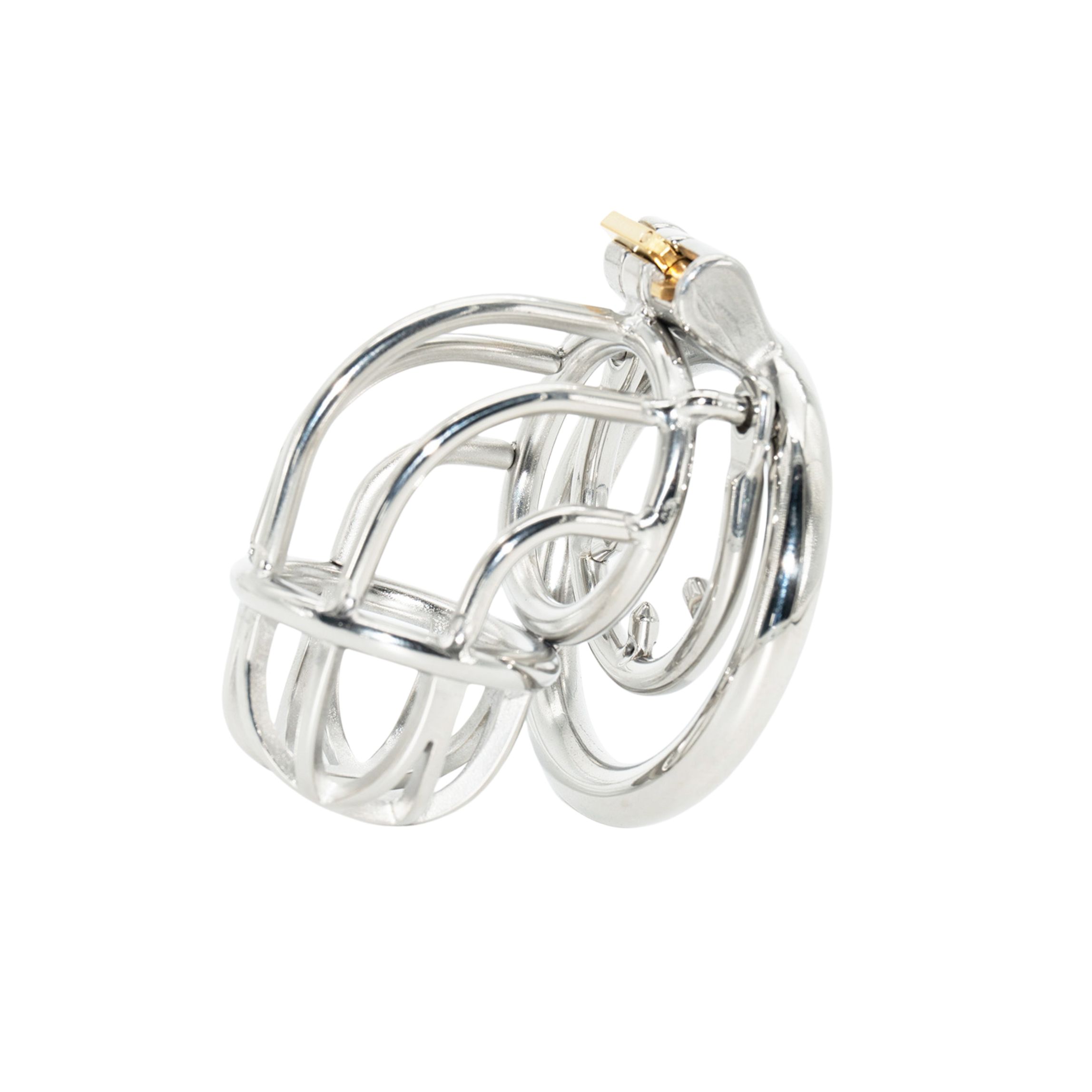 The Steel Down Boy is a curved steel chastity cage designed to allow painful erections, while being wearable for long term chastity periods, thanks to its open design that makes it easy to clean in depth while wearing it.